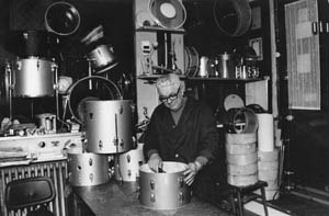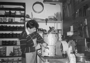Szerencsére nem ugrottam be. Visszaírtam, hogy nem zavarnak a lyukak, úgyis csak kiállítási célra használjuk a hangszert – küldje nyugodtan! Valószínűleg menet közben rájött, hogy ez nagyon megéri a pénzt, ha még Magyarországról is érdeklődnek utána, de az is lehet, hogy valaki ráígért – nem tudhatom. Amikor a szerelés megérkezett, és a nagydob belső felszínét alaposan szemügyre vettem, örömmel nyugtáztam, hogy a levél blöff volt, hiszen a kiöntött porcelán felülete nem lehetett volna egyenletesebb és fehérebb, mint amilyen ez a hatvannégy éves hangszer.