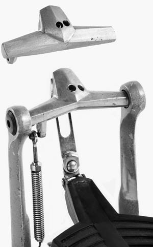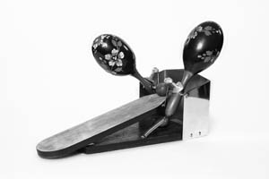 Api eredeti dobverőinek nemes és méltó környezetet akartam teremteni. A dobverő a budapesti Strenberg hangszergyár Berton modellje. Az 1935-ös Strenberg Hiradó így ír róla: "Különleges gonddal készített, arányos súlyelosztású, rugalmas faanyagból készült dobverő, simára polírozva. Páronként celofánzacskóba csomagoljuk." A verő nem a megszokott fej-nyak-törzs felépítést követi, hanem egyetlen szélesedő kúpforma a nyak és a törzs. A dobverő tartóját márványból terveztem, formavilágában igazodva a környezet egészéhez. Az art deco tárgykultúrában fontos helyet kapnak a gazdag rajzolatú márvány asztalneműk, nemesfémdíszítésekkel kiegészítve, így a dobverőket tartó bakok és a három geometrikus díszítőelem itt polírozott sárgarézből készült. A márvány a történelmi Magyarország területéről, a ma Romániában található ruszkicai bányából való.